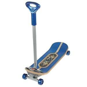 The Grow-with-Me 3-in-1 Skateboard from Fisher-Price features a traditional board, with handle and innovative sliding wheels. It has 3 Grow-with-Me stages. Stage 1: It has a handle and sliding wheels which are in the outward low position that makes the skateboard stable for little ones. Stage 2: The handle comes off but the wheels are still in the outward low position which makes it stable for the little ones. Stage 3: The wheels slide in and it’s the same height as a traditional skateboard and ready for kids to have regular skateboarding fun.